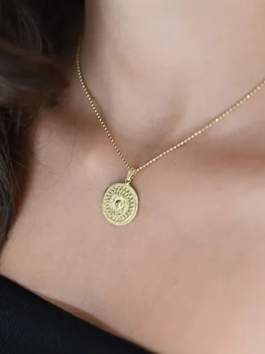 BIŻUTERIA SREBRNA ARTYSTYCZNA Kolczyki srebrne pozłocone – Mandala Zjawiskowe kolczyki srebrne próby 925 ozdobione motywem mandali – symbolem harmonii, energii i wewnętrznego spokoju. Pokryte 24-karatowym złotem, zachwycają ciepłym blaskiem i kunsztownym wzorem, który subtelnie przyciąga wzrok. To biżuteria pełna znaczenia – elegancka, kobieca i ponadczasowa. Parametry: Materiał: srebro próby 925 Powłoka: 24-karatowe złoto Średnica koła: 2 cm Całkowita długość: 4 cm Waga: 8,8 g Dlaczego warto? Ręcznie wykonane z dbałością o detale Symboliczny wzór mandali – równowaga i harmonia Doskonałe do eleganckich i codziennych stylizacji Pięknie komponują się z zawieszką z tej samej kolekcji