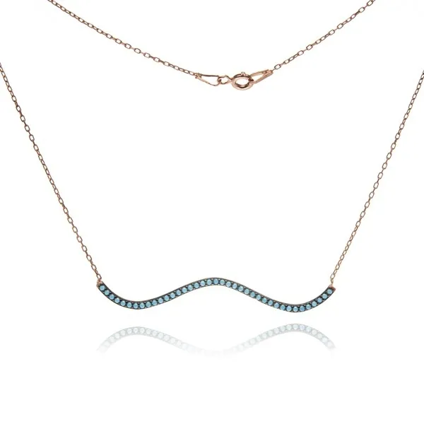 Naszyjnik srebrny pozłacany różowym złotem z niebieskimi turkusami