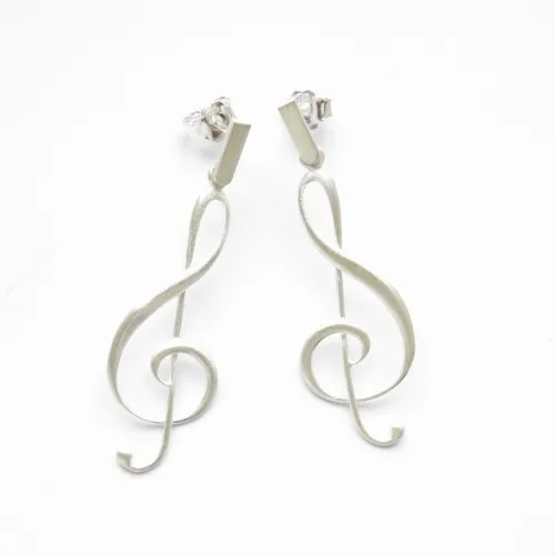 Kolczyki srebrne - Klucz wiolinowy biały sztyft