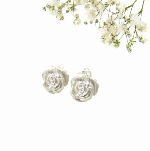Kolczyki srebrne - Białe różyczki na sztyftach