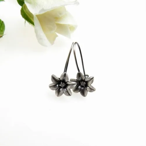 Kolczyki srebrne w kształcie uroczych kwiatuszków. Środek został pomalowany złotem. Szerokość kwiatuszków 1,4 cm. Waga: 3 gr. Nr katalogowy :KW58KB