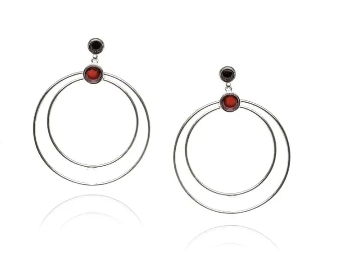 Piękne kolczyki srebrne duże koła z wiśniowym bursztynem