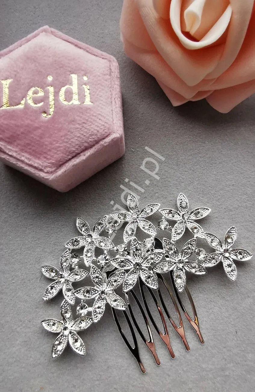 Ślubny grzebyk z kwiatowym wzorem z kryształkami - spinka do włosów
