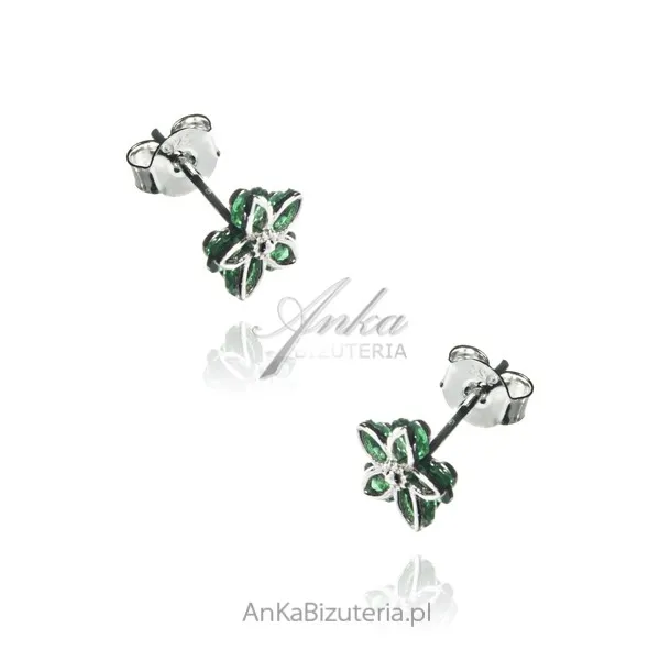 Kolczyki srebrne kwiatki z zieloną cyrkonią