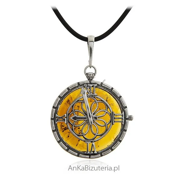 Srebrna zawieszka z bursztynem zegar