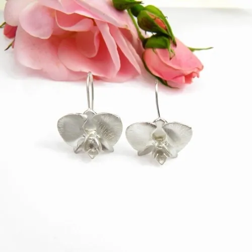 Kolczyki srebrne - Złota orchidea na sztyftach
