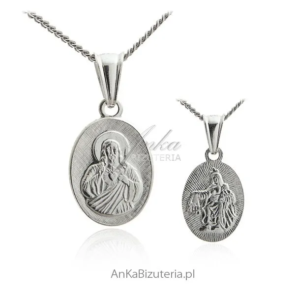 Medalik srebrny szkaplerz - matka boska szkaplerzna - medalik na komunie
