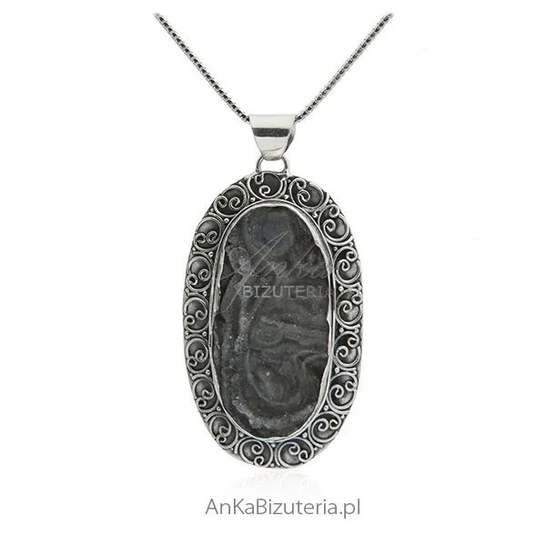 Unikat - zawieszka srebrna druza chalcedon - oryginalna biżuteria srebrna