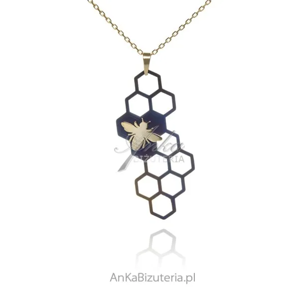 Zawieszka srebrna pozłacana pszczoła na plastrze miodu z tytanem