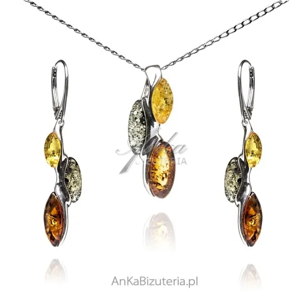 Komplet biżuteria srebrna z bursztynem
