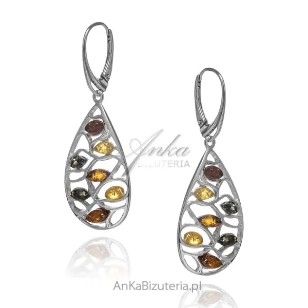 Srebrna zawieszka pozłacana z niebieskim bursztynem