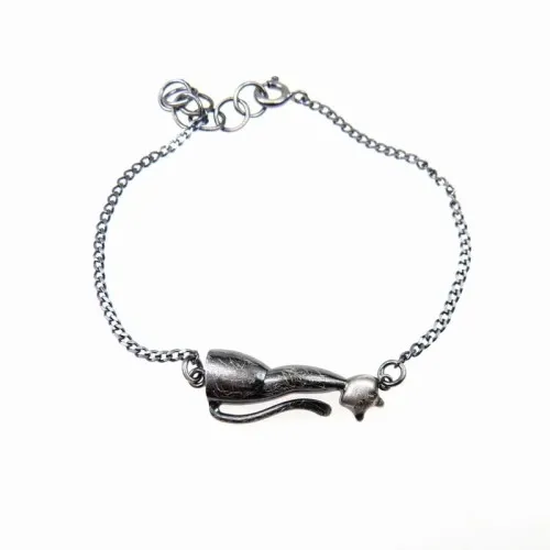 Bransoletka z małym kotem na łańcuszku grafitowa