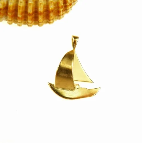 Zawieszka srebrna z żaglówką dużą pozłocona