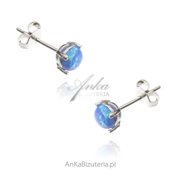 Kolczyki srebrne z niebieskim opalem na sztyft