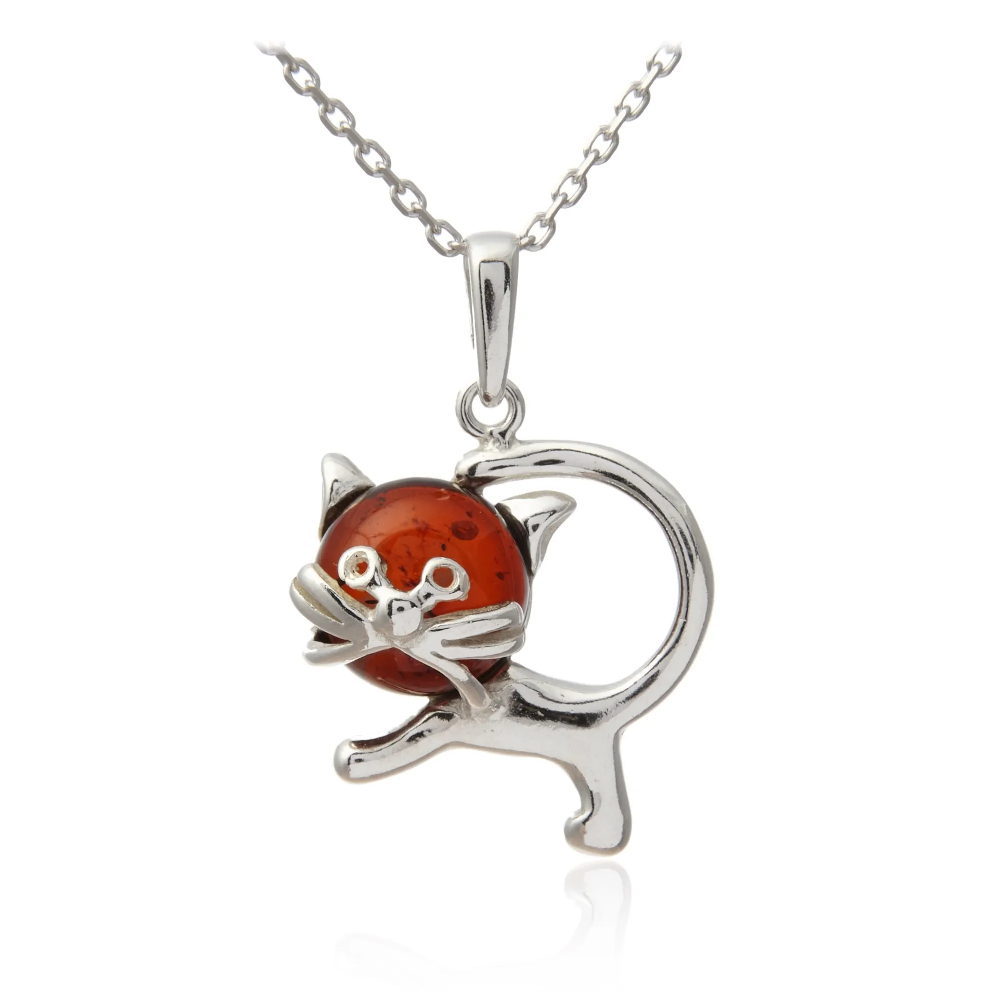 Naszyjnik srebrny z koniakowym bursztynem feng shui