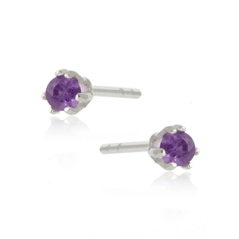 Subtelne kolczyki srebrne z ametystem - maleńkie sztyfty 3,5 mm
