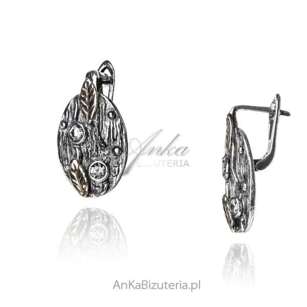 Kolczyki srebrne oksydowane i pozłacane foglia na angielskim zapięciu