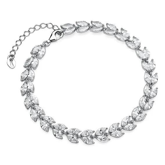 Srebrna bransoletka ślubna liście z cyrkoniami