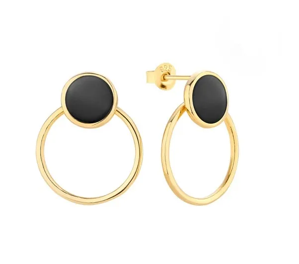 Kolczyki srebrne pozłacane z czarnymi onyksami