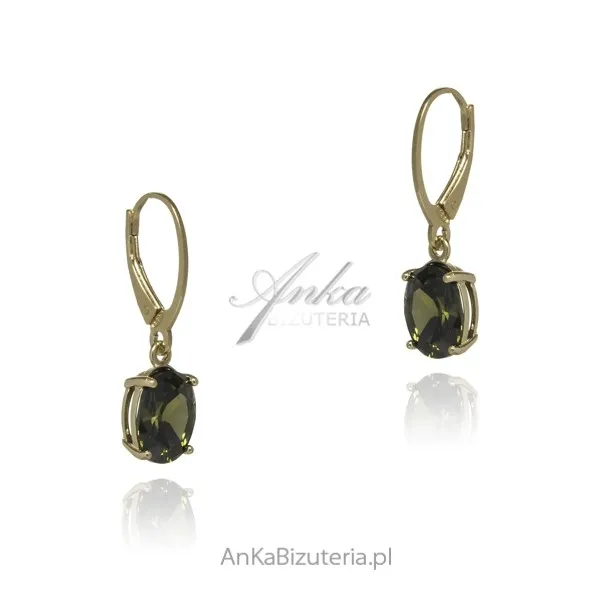 Kolczyki srebrne pozłacane z oliwkową cyrkonią