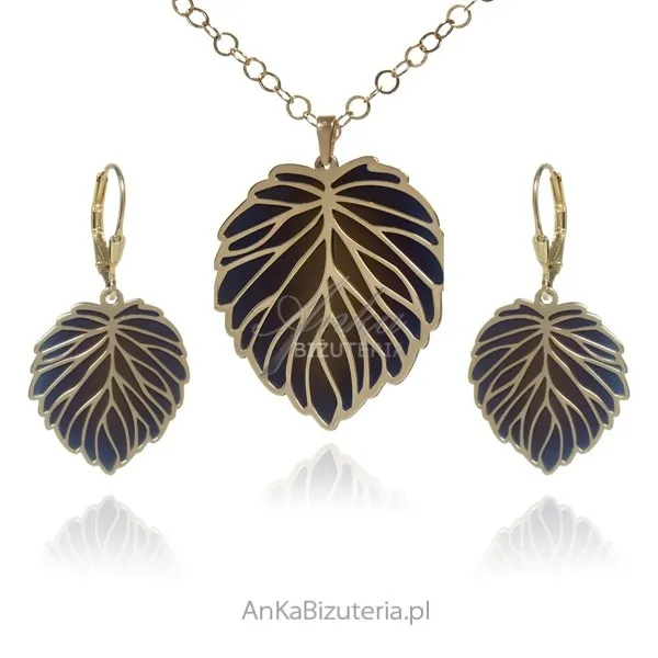 Biżuteria srebrna pozłacana z wielobrawnym tytanem listek