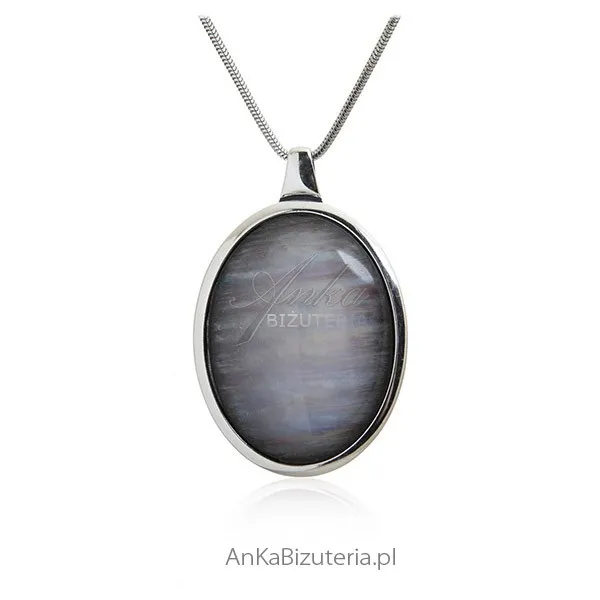 Zawieszka srebrna z szarym uleksytem z efektem "kociego oka"
