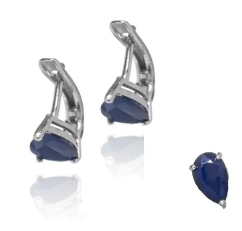 Kolczyki srebrne z naturalnym szafirem na angielskim zapięciu