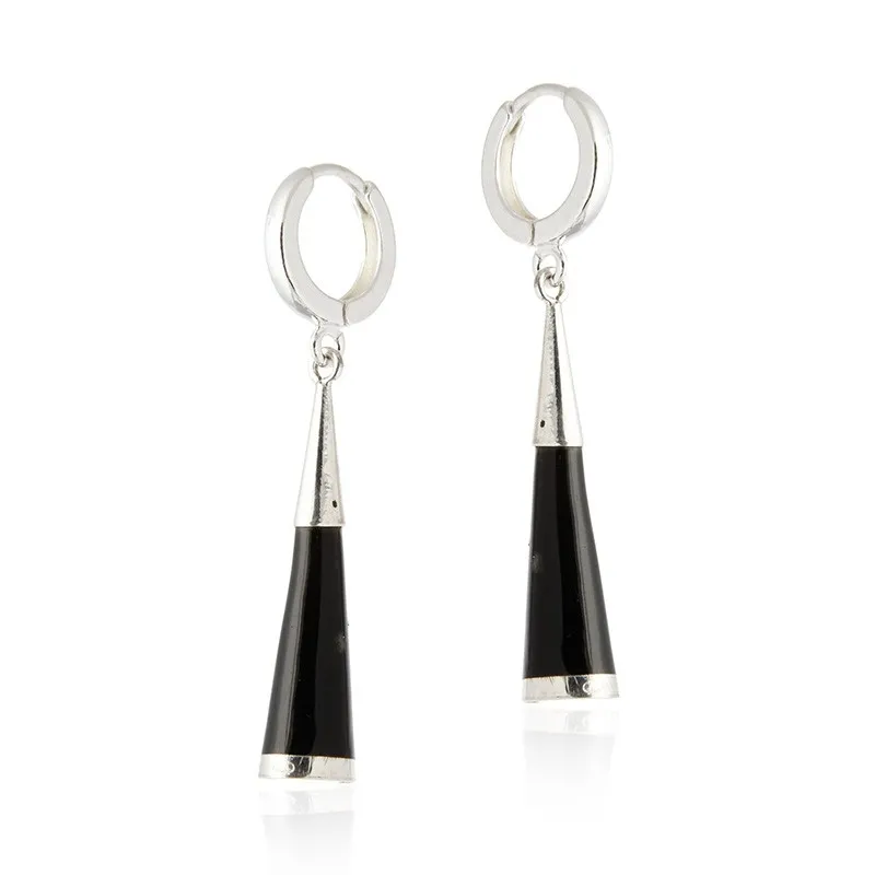 Kolczyki srebrne z onyksem w kształcie stożka -onyksowe obelisky