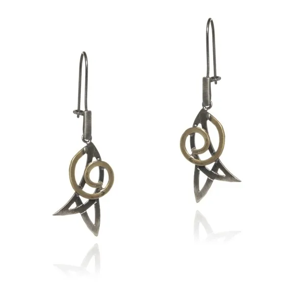 Biżuteria artystyczna - kolczyki srebrne pozłacane i oksydowane