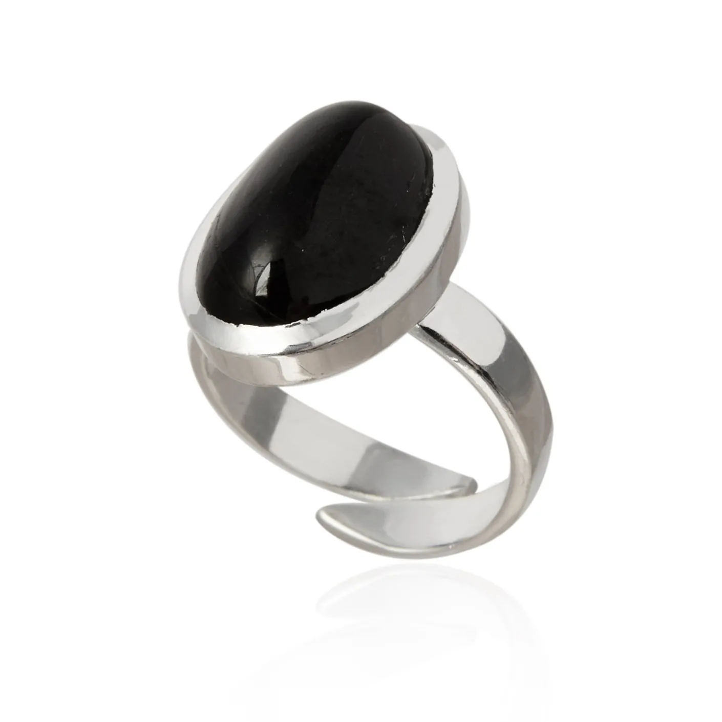 Pierścionek srebrny regulowany z naturalnym kamieniem czarna gwiazda
