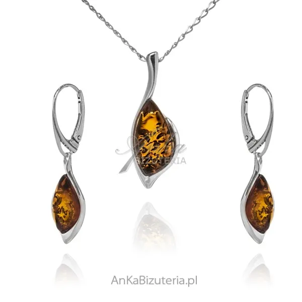 Komplet biżuteria srebrna z koniakowym bursztynem klasyka
