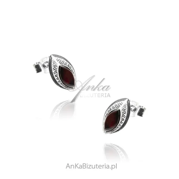 Kolczyki srebrne z wiśniowym bursztynem sztyft