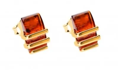 Kolczyki srebrne pozłacane z koniakowym bursztynem – "złoto bursztynowego lata"
