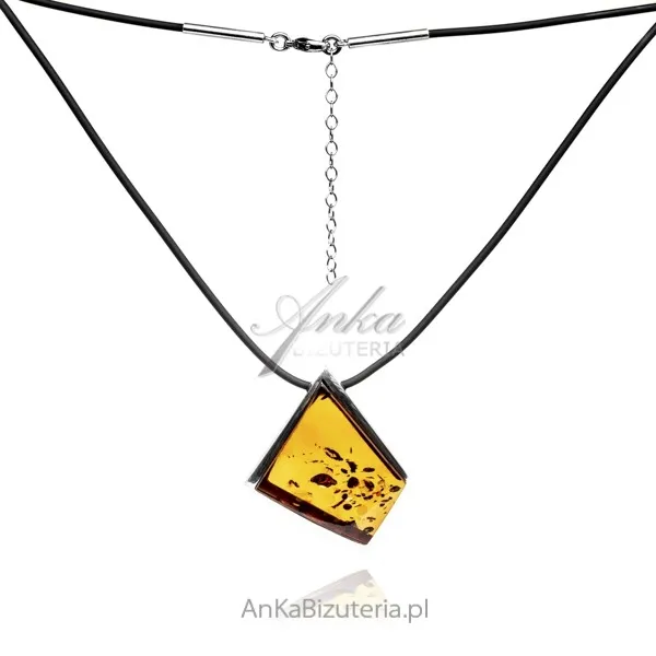 Oryginalny naszyjnik srebrny z bursztynem na kauczukowym łańcuszku