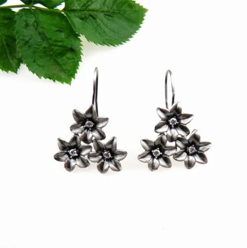 Kolczyki srebrne w kształcie dwóch dużych kotów. Kolczyki zostały pozłocone. W oczach umieszczone białe cyrkonie, by nadać kociemu spojrzeniu blasku. Długość kolczyków 6 cm, szerokość 2 cm. Waga: 14 gr. Milusińskie, leniwe dachowce. Kolczyki dość duże, wyraźne niezwykle efektowne. Nr katalogowy :Z12KZ