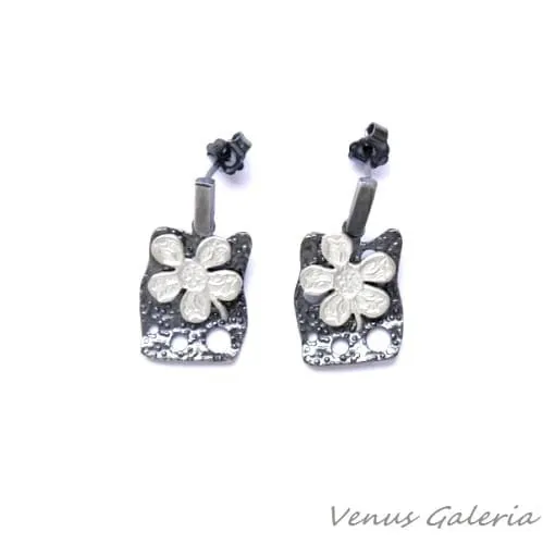 Kolczyki srebrne - Księżycowy kwiat mały biało-czarny
