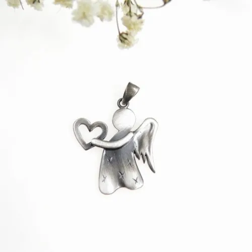 Zawieszka z aniołkiem II dużym szarym - na komunię