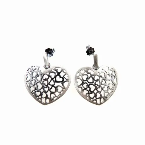 Srebrne kolczyki z ażurowymi serduszkami na sztyftach