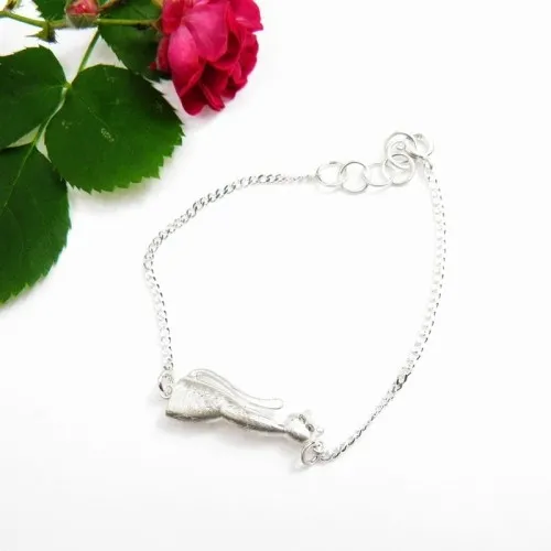 Bransoletka z małym kotem na łańcuszku jasna - biżuteria artystyczna