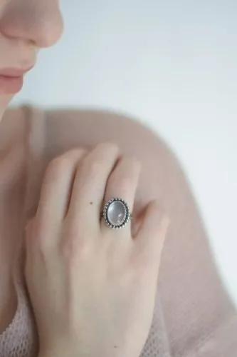 Kolczyki wykonane ze srebra z kamieniem księżycowym. Całkowita długość kolczyków 3 cm, wymiary oprawy 2,2 cm na 1,3 cm. Wymiary kamieni: 0,9 mm na 0, 7 mm. Kolczyki wykończone oksydą w kolorze grafitowym. Do kolczyków polecamy pierścionek i wisiorek z tym samym kamieniem. Kamień księżycowy według ezoteryków jest kamieniem pełnym energii, która wpływa na świadomość, stabilizuje emocje, łagodzi stres. W astrologii to szczęśliwy kamień dla wszystkich osób. Polecany dla osób spod znaków: Raka, Wagi.