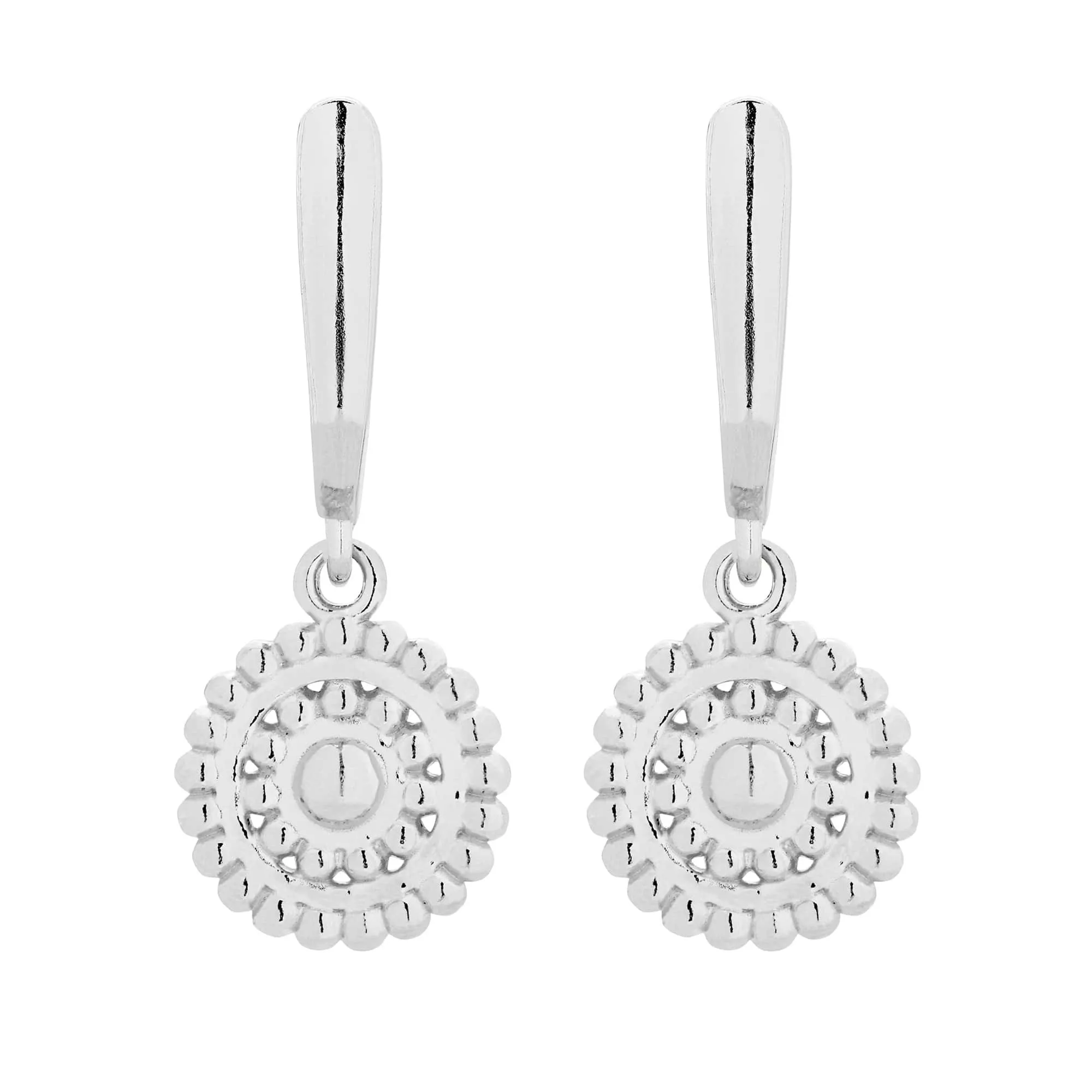 Złote kolczyki z rozetami. Zapinane na bigle angielskie. Całość wykonana ze srebra 925 powlekanego 24 karatowym różowym złotem. Długość kolczyków 2,9 cm Rozeta 1,1 cm Zapakowane w eleganckie pudełeczko z logo marki. Produkt o wadze poniżej 5 g. Posiadają logowaną metkę. Istnieje możliwość zamówienia kolczyków w wersji ze srebra 925 lub srebra 925 powlekanego 24 karatowym żółtym złotem, na innych biglach, klipsów, z dodatkowymi zawieszkami, kamienieniami, perłami lub kryształami SWAROVSKI® CRYSTAL itp.