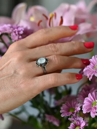 Retro pierścionek z kamieniem księżycowym - Venus Galeria
