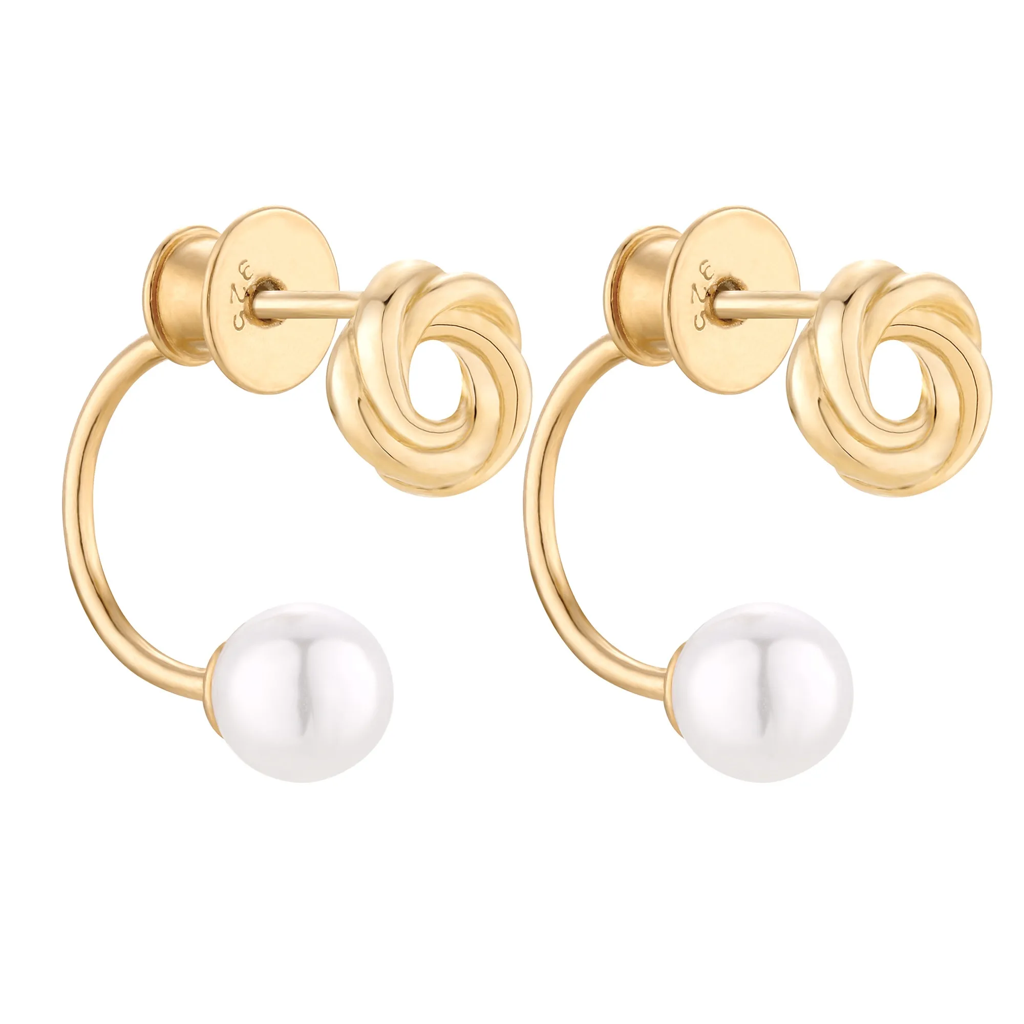 Złote kolczyki z węzełkami i perłami SWAROVSKI® CRYSTAL