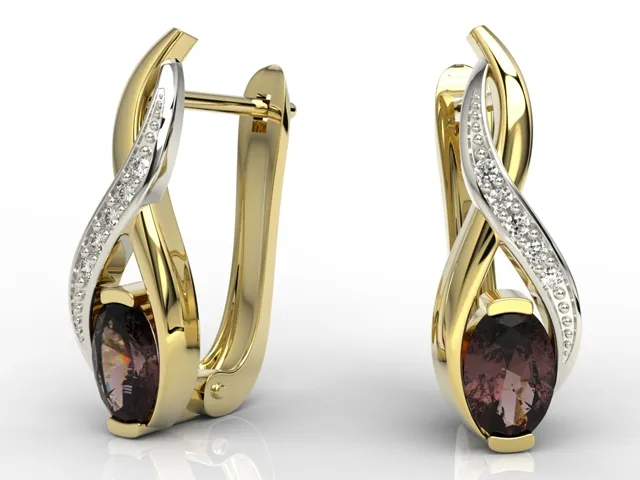 Kolczyki z żółtego i białego złota z granatami i brylantami APK-69ZB
