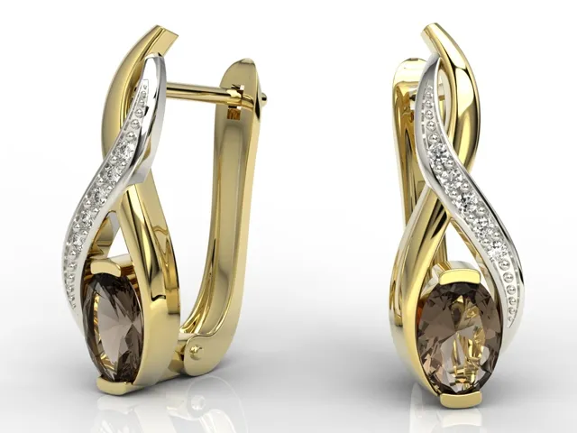 Kolczyki z żółtego i białego złota z kwarcem dymnym i brylantami APK-69ZB