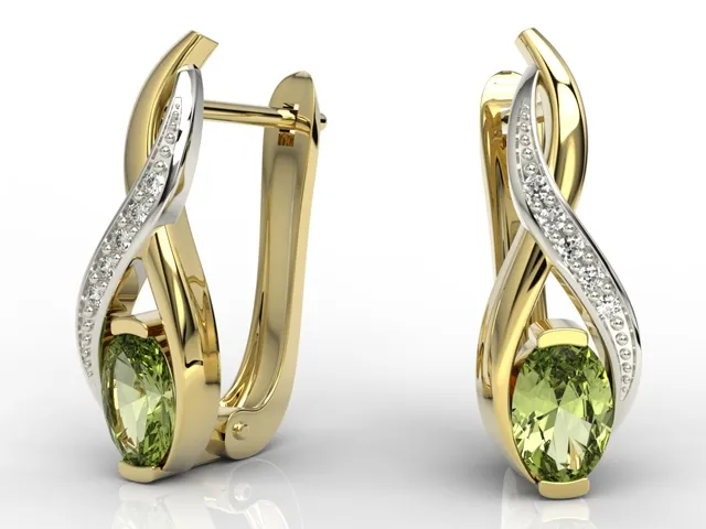 Kolczyki z żółtego i białego złota z oliwinem i brylantami APK-69ZB