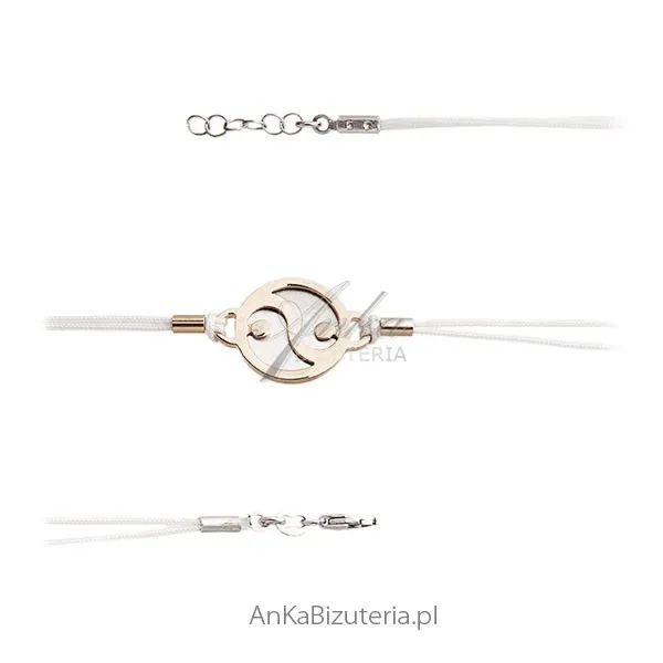 Bransoletka srebrna pozłacana na białym sznureczku