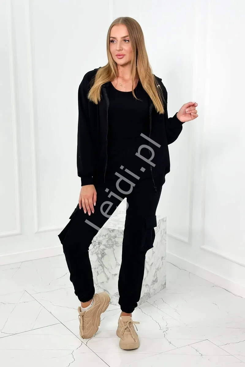 Komplet 3 w 1 bluza + top + spodnie czarny 9588