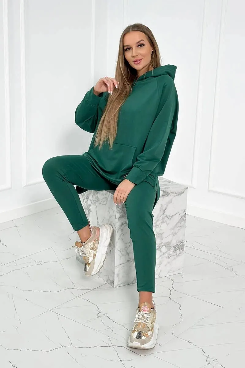 Komplet z bluzą z kapturem ciemny zielony