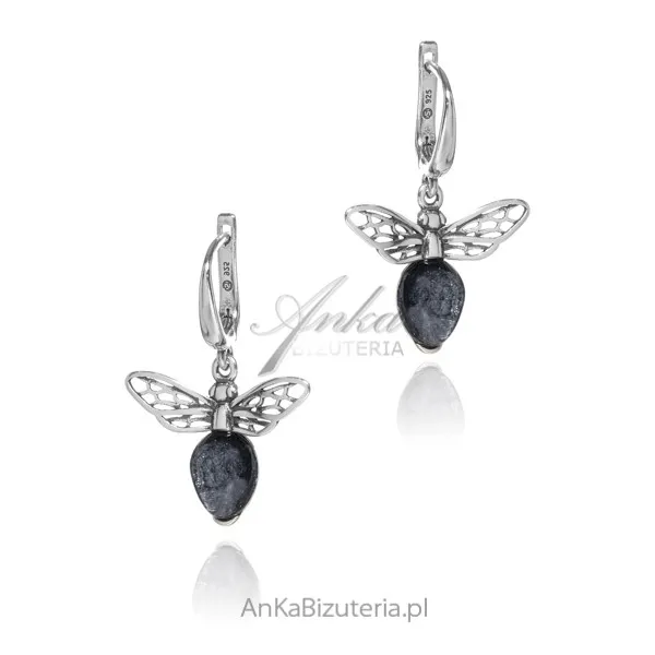 Kolczyki srebrne pszczółki z szarym uleksytem